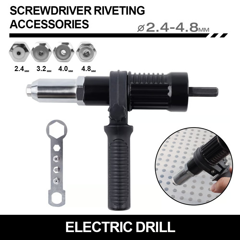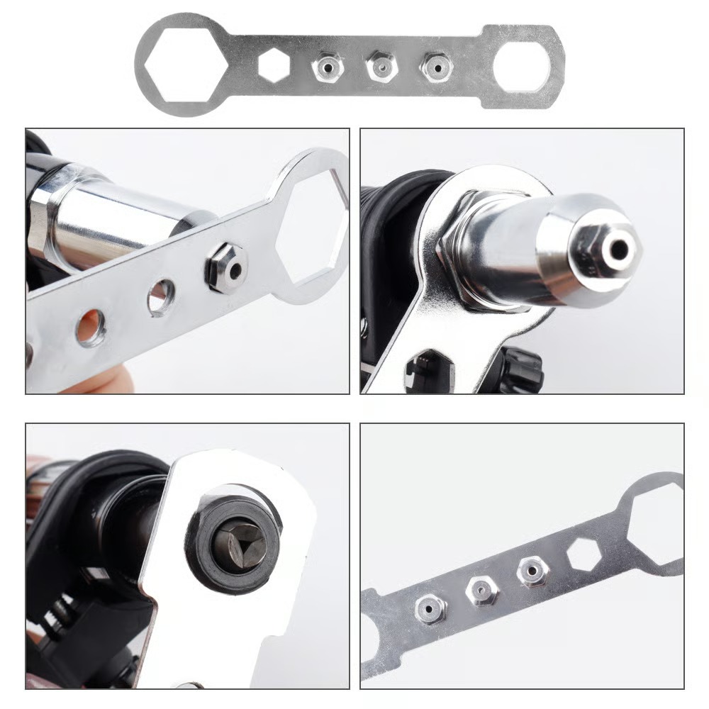 - The Tool Kit Includes: 1*rivet gun adapter; 1*wrench; 1*handle; 4*nozzles (2.4-4.8mm), suitable for various rivet sizes.